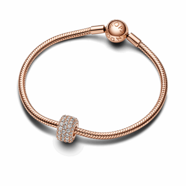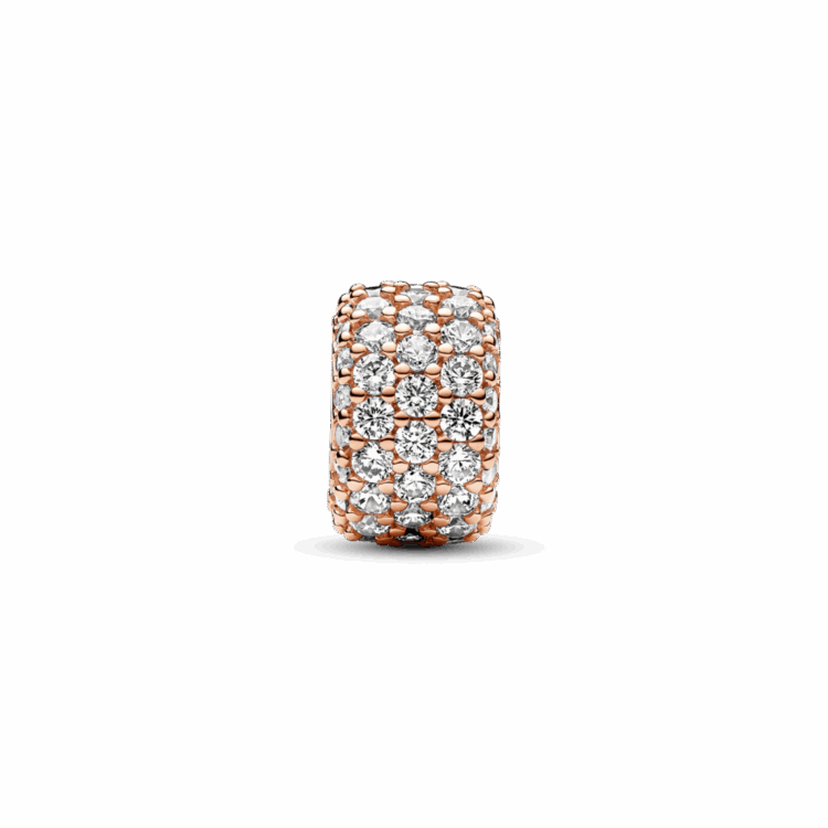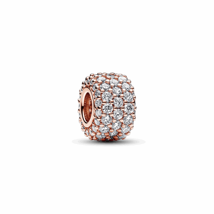 תנצצי מכל זווית אפשרית עם צארמ פאווה מקולקציית Pandora Moments שלנו. הצארמ מצופה זהב ורוד 14 קראט ועשוי מ-85 זרקונים שקופים בשיבוץ פאווה. מדובר בתוספת נוצצת שתיקח את צמיד המומנטס ואפילו את השרשרת שלך לשלב הבא.