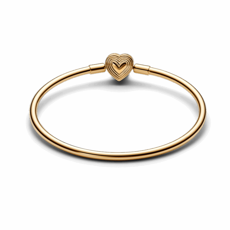 צמיד בנגל מקולקציית המומנטס האייקונית שלנו, עשוי ציפוי זהב 14 קראט עם סוגר בצורת לב במראה שכבות. העיצוב הזה הוא מחווה לכוחה הגדול של האהבה. ניתן להוסיף לו בין 16 ל-18 צארמס או תליונים.