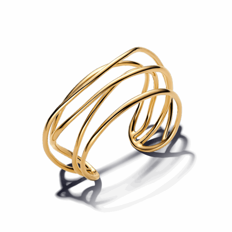 צמיד בנגל פתוח בציפוי זהב 14 קראט ובעיצוב שכבות במראה גלי וא-סימטרי. מדובר בפיס המושלם שייצור ברגע לוק מתוחכם ומלא בסטייטמנט. שלבי איתו תכשיטים נוספים בגוונים מוזהבים וחמים.