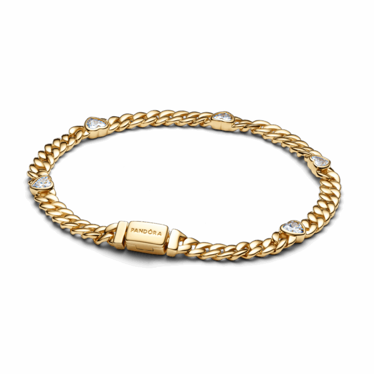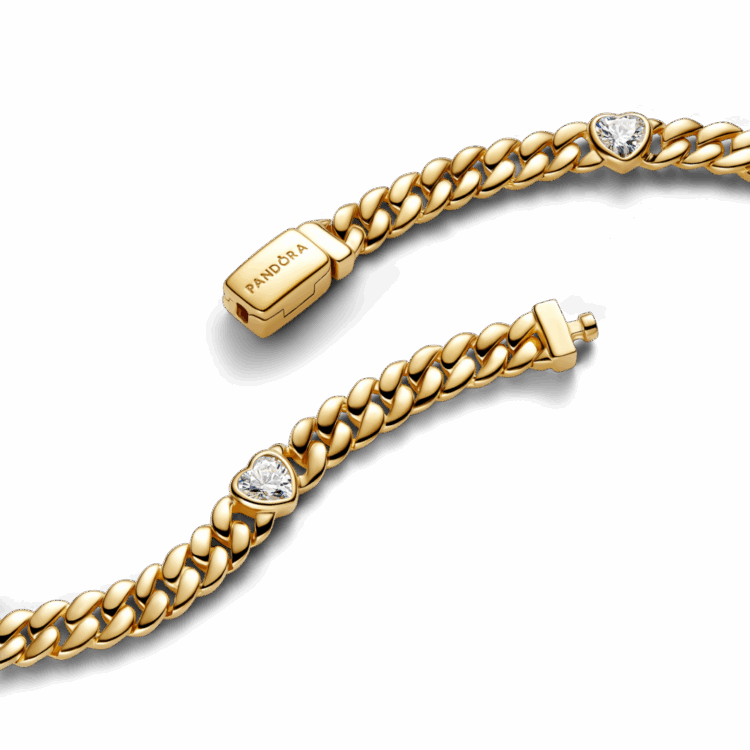 צמיד חוליות עבות בציפוי זהב משובץ זרקוני לב