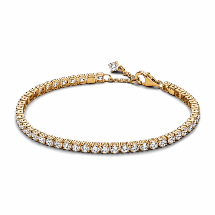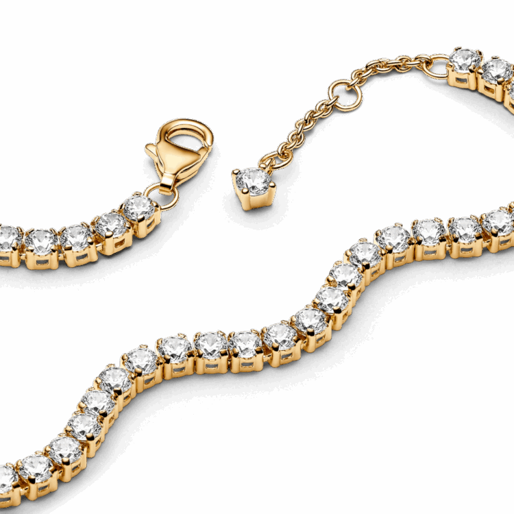 לכי על טוויסט מודרני עם צמיד טניס נוצץ מרובע בציפוי זהב 14 קראט עם 48 אבנים עגולות. מתכוונן ודינאמי, צמיד הטניס כולל אבן נוצצת המשתלשלת לצד הסוגר לטאץ מושלם. מעוצב עם אבנים קצת יותר גדולות משאר צמידי הטניס האחרים שלנו. הצמיד הזה מושלם ליצירת אמירה רעננה כשהוא משולב עם צמידים אחרים בגוונים וסגנונות שונים.