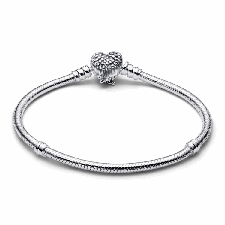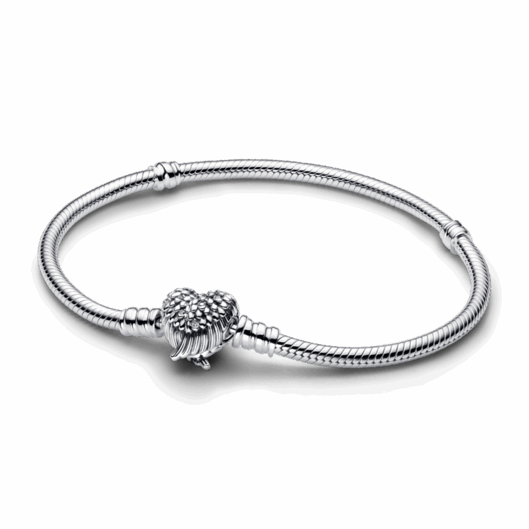 קחי את האהבה שלך לכל המקום: צמיד מומנטס עשוי כסף סטרלינג עם סוגר בצורת לב וכנפי מלאך בשילוב 15 זרקונים נוצצים. ניתן להוסיף לצמיד עד 18 צארמס או תליונים.