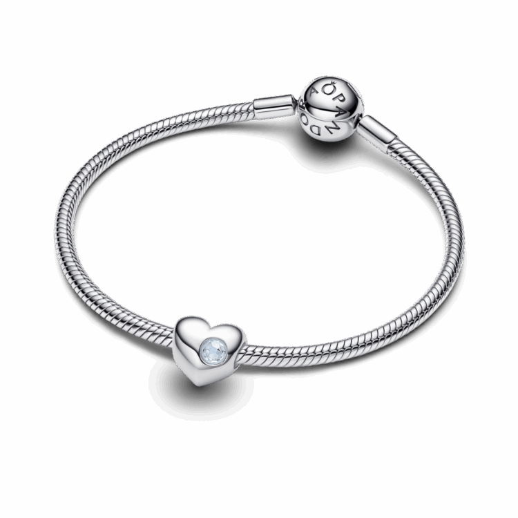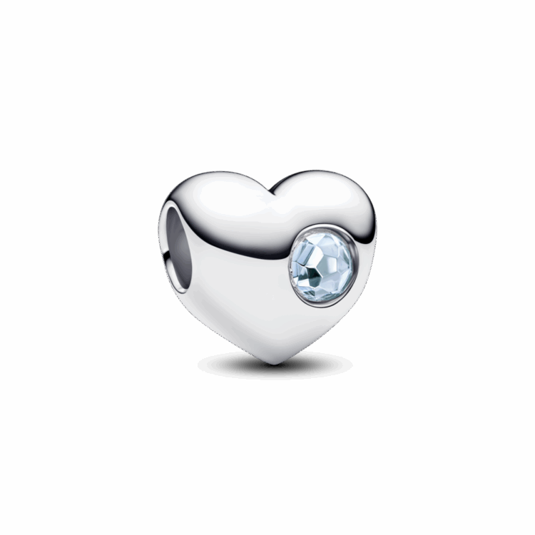 צ׳ארמ לב כסף עם אבן החודש מרץ ניתן לחריטה
