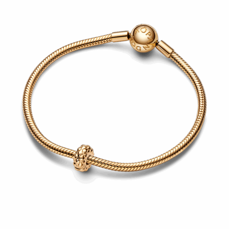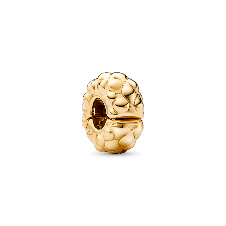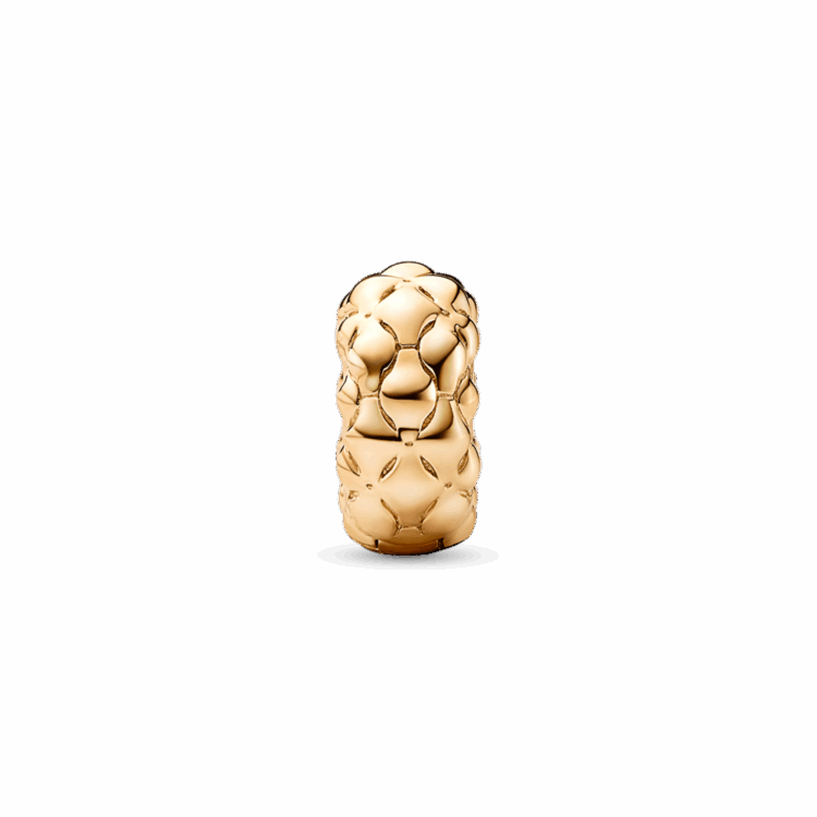 לכי על טקסטורה השובצת ואייקונית ללוק שלך עם קליפס עגול בציפוי זהב 14 קראט. עם טקסטורת הפירמידה והחתך הכדורי שלו, הקליפס הזה יתאים בול לצמיד שלך, שכן הדוגמה שלו מהדהדת את אייקון פנדורה החדש. הצארם כולל תפס סיליקון פנימי ולא ניתן לסגנן על חוטים, כך שהוא יישאר מקובע במקום אחד בשרשרת תוך כדי תנועה, תוך רווח בין הצארמס. צרי מראה בסגנון הסוואה על ידי הוספתו לצמיד בטקסטורה למראה נועז.