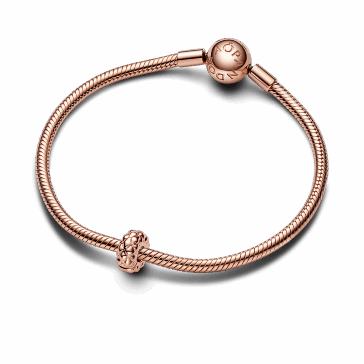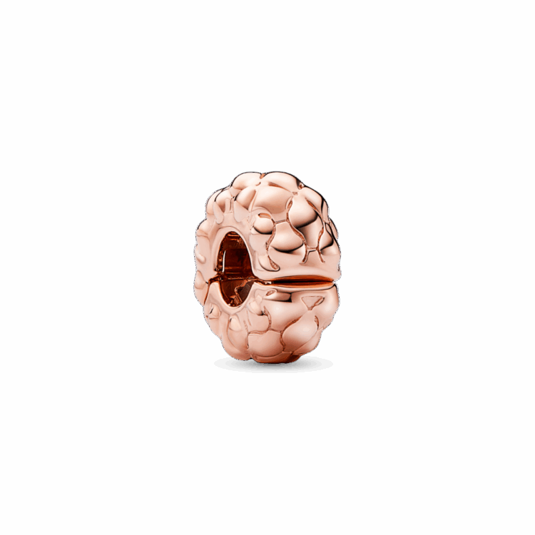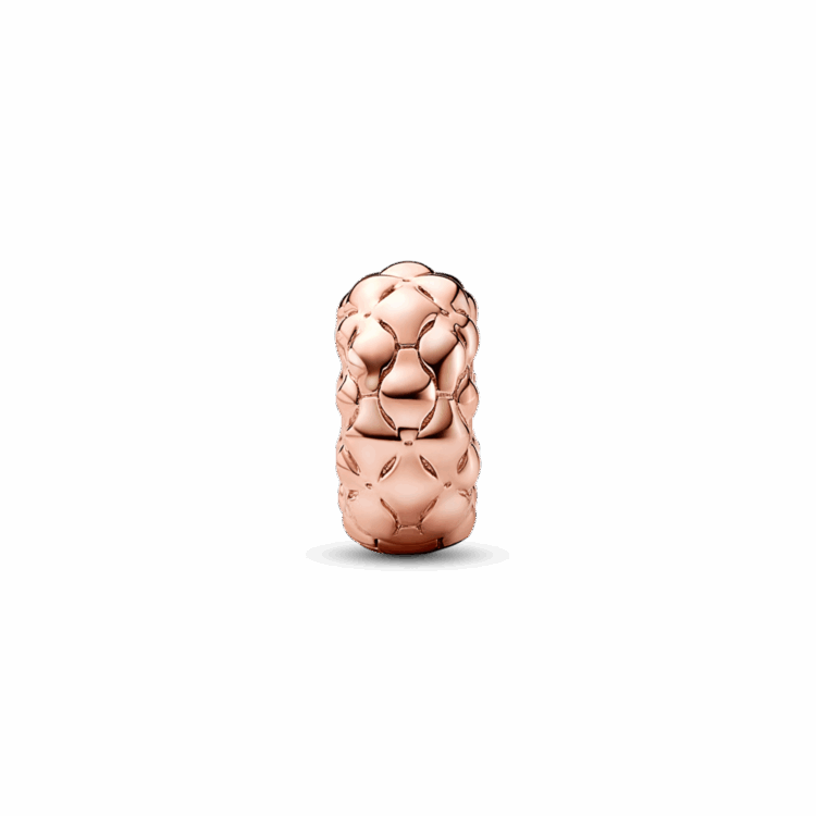 לכי על טקסטורה משובצת ואייקונית ללוק שלך עם קליפס עגול בציפוי זהב ורוד 14 קראט. עם טקסטורת הפירמידה והחתך הכדורי שלו, הקליפס הזה יתאים בול לצמיד שלך, שכן הדוגמה שלו מהדהדת את אייקון פנדורה החדש. הצארמ כולל תפס סיליקון פנימי כך שהוא יישאר מקובע במקום אחד בצמיד תוך כדי תנועה, תוך רווח בין הצארמס. צרי מראה בסגנון הסוואה על ידי הוספתו לצמיד בטקסטורה למראה נועז.