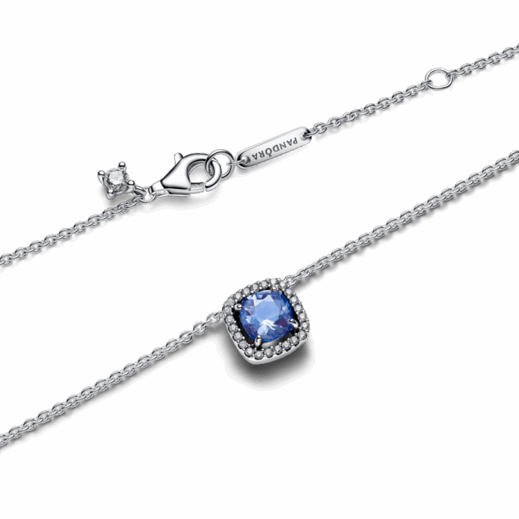 הוסיפי טאץ כחול עמוק ללוק שלך עם שרשרת מלאה בסטייטמנט. עשויה כסף סטרלינג עם אבן קריסטל כחולה ומרובעת וזרקונים שקופים מסביבה המוסיפים ממד נוסף של גלאם. השרשרת מתכווננת לשלושה אורכים שונים להתאמה אישית.