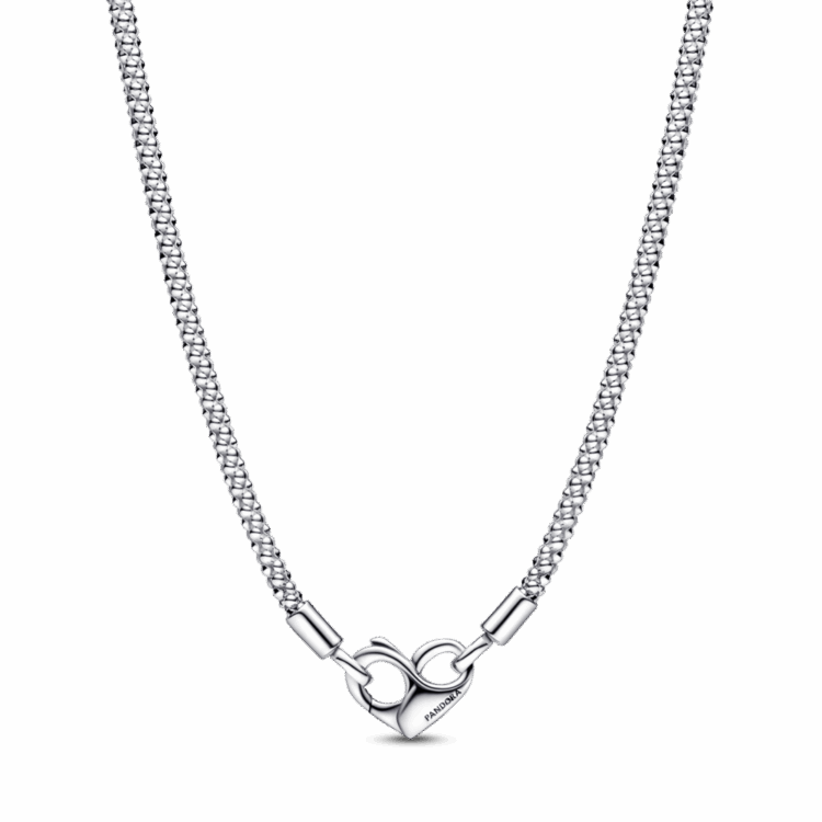 עדכני את הקולקציה שלך עם מחרוזת השרשרת המשובצת שלנו מקולקציית Pandora Moments מחרוזת כסף סטרלינג זו בגימור עבודת יד, כוללת שרשרת מחוספסת וגמישה ותפס לב בר-פתיחה עם פרט אינסוף. לתשומת לבך: ניתן לסגנן אותה עם כל גודל של תליון Pandora Moments O או תליון צארם לב.