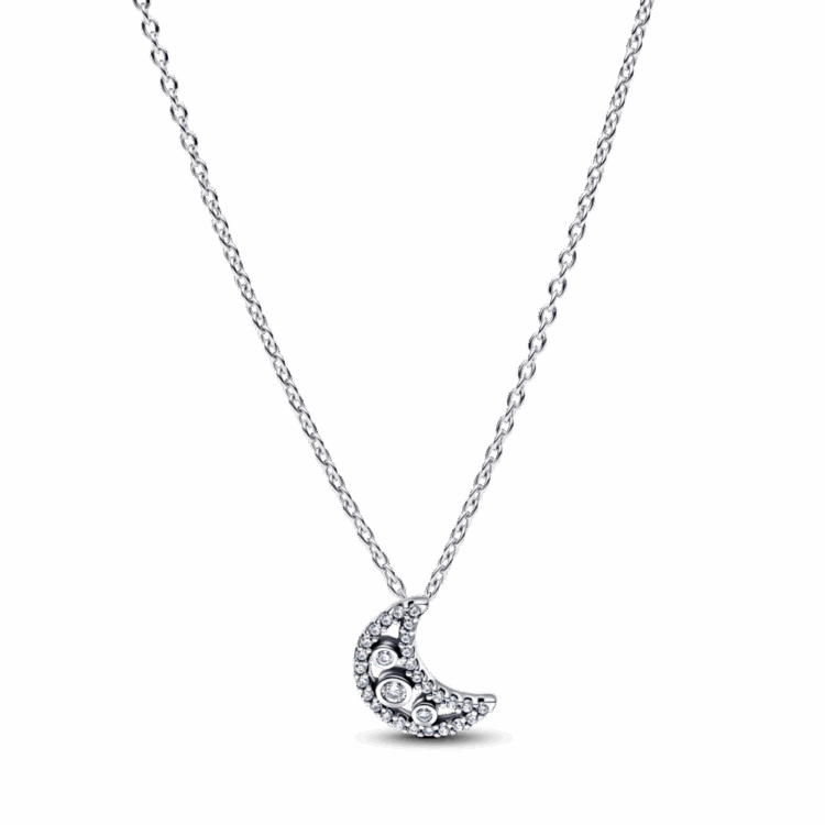 שרשרת כסף סטרלינג עם תליון ירח קסום, משובץ זירקונים. עיצוב שמימי ועדין שמסמל אור פנימי וחלומות. מושלם להשלמת מראה אלגנטי או כמתנה מלאת משמעות.