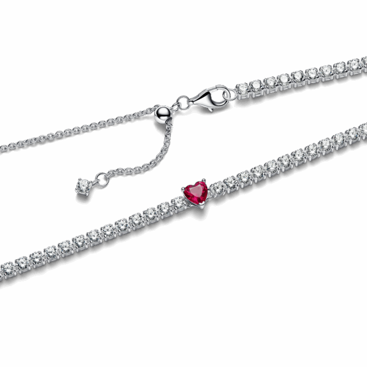 שמרי על הלב שלך במקום הנכון – במרכז הלוק שלך. שרשרת כסף סטרלינג נוצצת ומרשימה עם זרקונים שקופים ואבן קריסטל אדומה בצורת לב. השרשרת מתכווננת ותוכל לשמש גם כשרשרת צוקר טרנדית וגם כשרשרת ארוכה יותר.