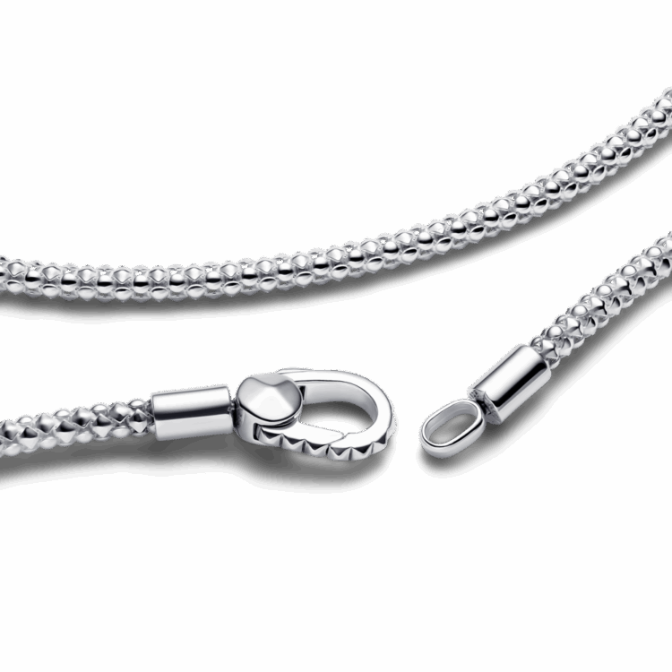 אלגנטיות עם אדג: שרשרת מומנטס עשויה כסף סטרלינג בטקסטורת הפירמידה האייקונית של פנדורה, עם סוגר בעיצוב קליפס המבטיח התאמה מאובטחת. ענדי אותה לבד ללוק מינימליסטי או הוסיפי לה צארמס ותליונים למראה ייחודי.