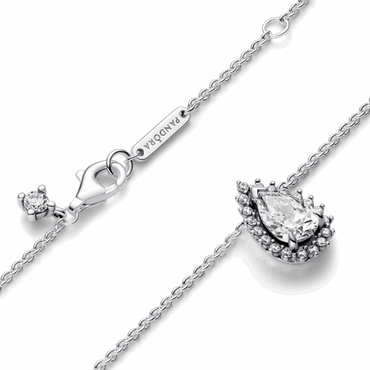 תנצצי כל יום מחדש עם שרשרת הילה בצורת אגס עשויה כסף סטרלינג. היא משלבת את האלמנט האייקוני של הקולקציה – הילת פאווה. האבן של התליון משובצת בצורת V אחד ושתי שיניים מוארכות כדי להדגיש את הצורה, המציעים משחק מתוחכם במימדים. התליון בצורת אגס מחליק בחופשיות על השרשרת וניתן לכוונון אורך. היא תהיה יפה בפני עצמה וגם תתאים ללוק שכבות הצהרתי.