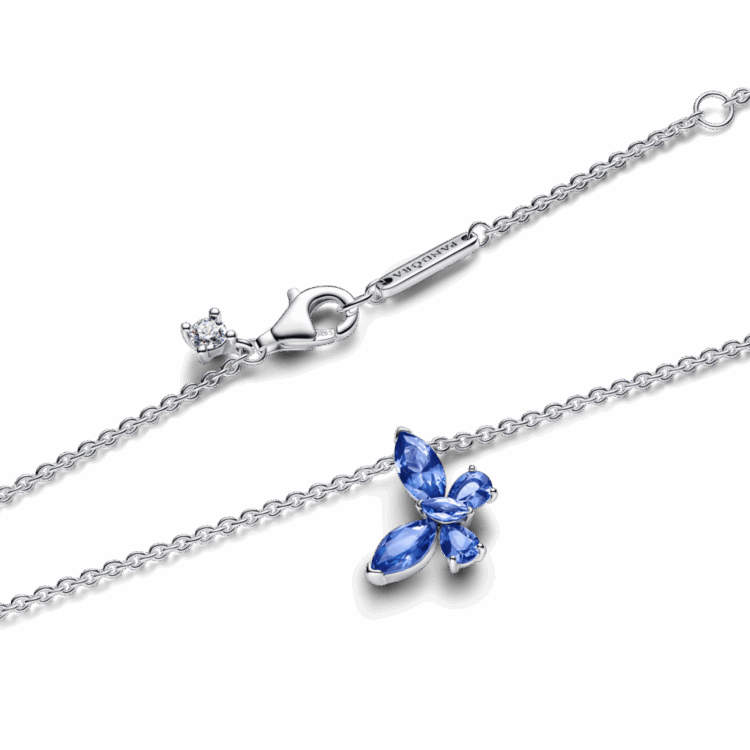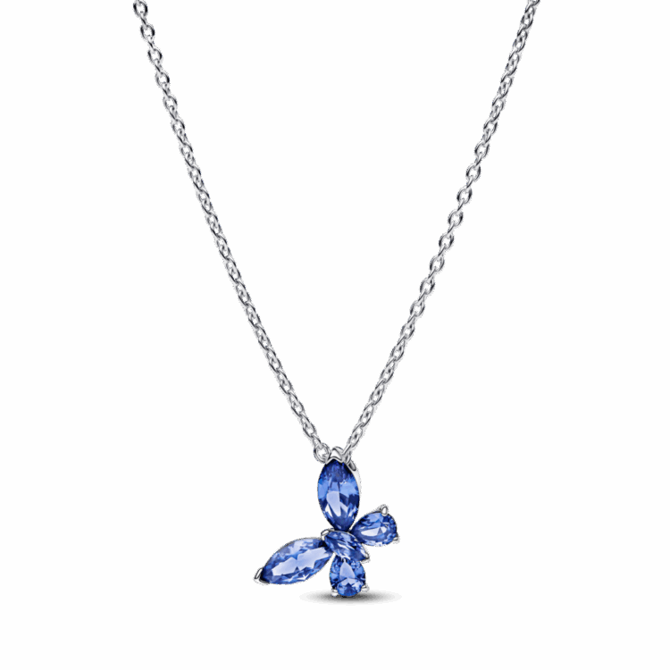 שרשרת פרפר מכסף סטרלינג עם קריסטל כחול וזרקונים נוצצים, בעיצוב עדין ומלא קסם. תכשיט ייחודי שמוסיף צבע וזוהר לכל הופעה. מושלם כמתנה או להשלמת הלוק האישי.