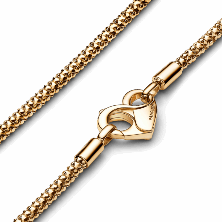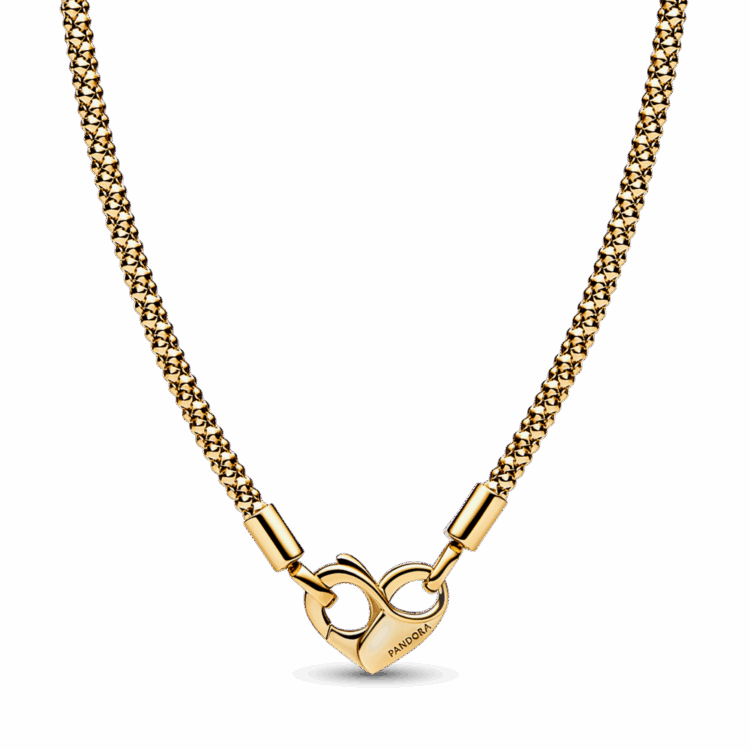 עדכני את קולקציית התכשיטים שלך עם שרשרת Pandora Moments מנוחשת בתערובת המתכת הייחודית שלנו בציפוי זהב 14 קראט. עשויה עבודת יד וכוללת שרשרת גמישה בעלת מרקם מנוחש וסוגר בצורת לב עם סמל אינפיניטי. ניתן להוסיף לשרשרת תליון O או תליון לב. שימי לב שלא ניתן לשנות את הסוגר.