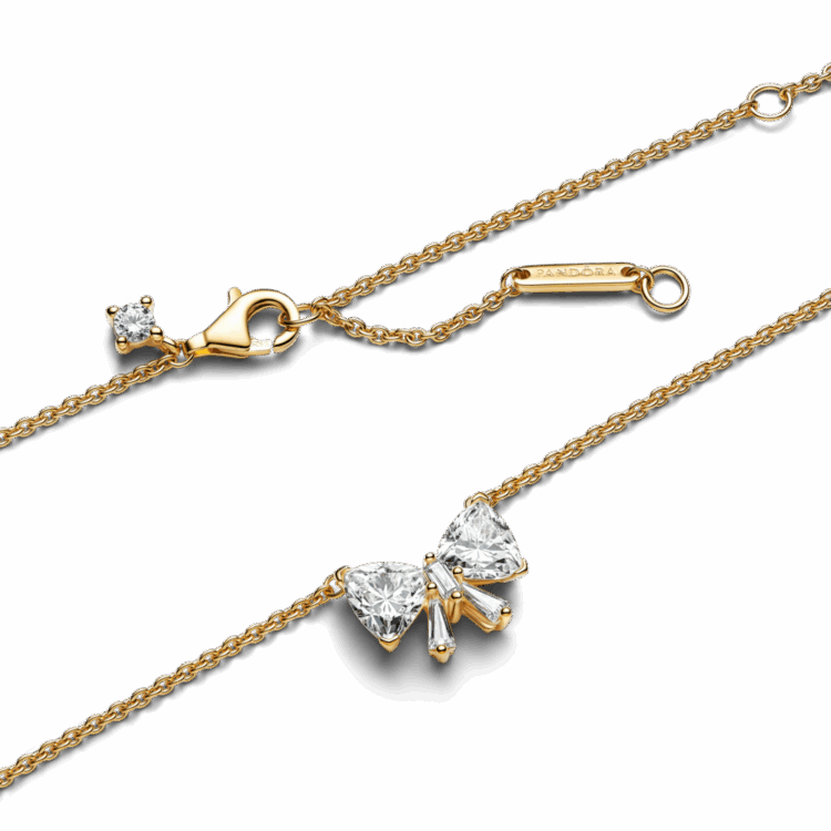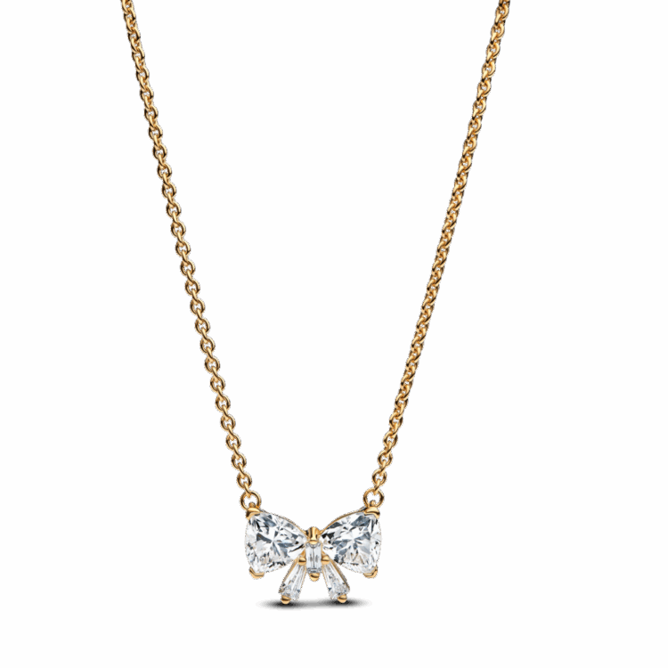 הלוק שלך לא יהיה שלם בלעדיה: שרשרת בציפוי זהב 14 קראט עם תליון בצורת פפיון המורכב מזרקונים שקופים ונוצצים. השרשרת מתכווננת ותשתלב מושלם בכל לוק שכבות וגם תהיה סופר-מתוקה בפני עצמה.