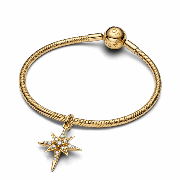 לכי בעקבות האור עם תליון בציפוי זהב 14 קראט בצורת כוכב הצפון. כולל אבנים נוצצות שיעניקו טאץ זוהר לצמיד המומנטס שלך או לשרשרת. הוא יוסיף ממד שמיימי ללוק שלך עם סמליות ומשמעות. כוכב הצפון מראה לנו את הדרך לימים בהירים יותר ומסמל את התקוות והחלומות שלנו.