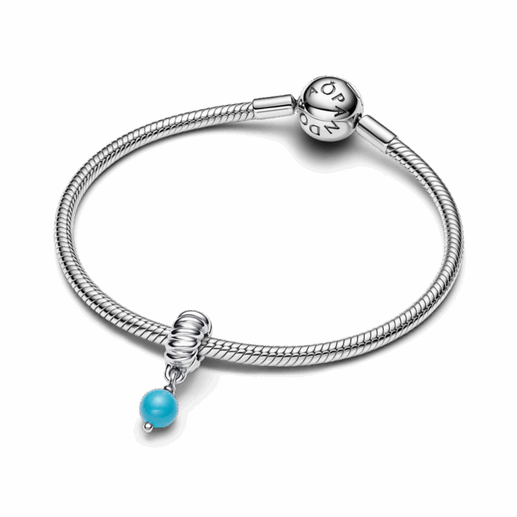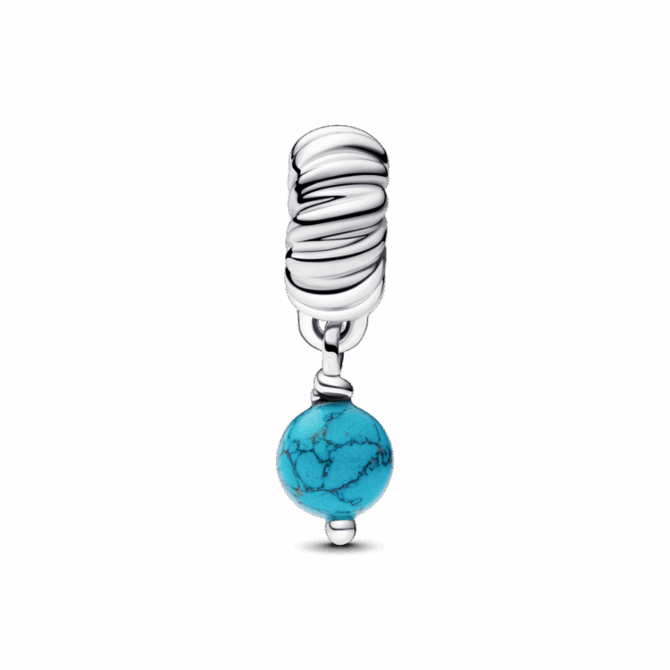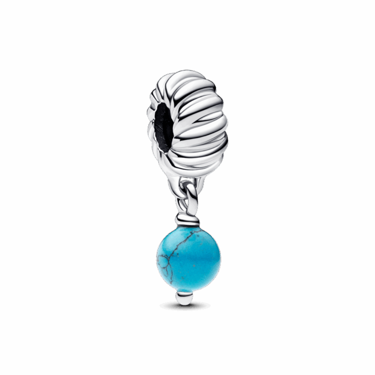 תליון כסף סטרלינג עם עיטורים בחלק העליון בטקסטורה ייחודית ואבן טורקיז עגולה בחלק התחתון. הוא יכניס ברגע טאץ מדויק של צבע לתכשיט שלך.