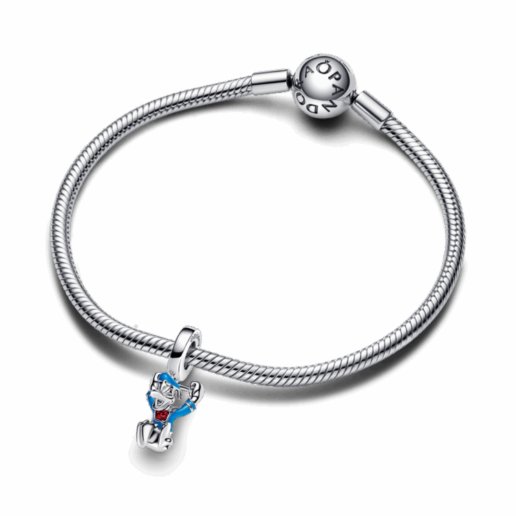 זמן לדיסני: תליון כסף סטרלינג בדמותו של דונלד דאק עם צבע אמייל כחול ואדום. הוא כולל דיטיילז של ידיים מורמות, עיניים עצומות ושטר פתוח. דונלד דאק הוא דמות אייקונית, המפורסמת בזכות מזגו הלוהט והשובבות שלו. הוא חובה בכל אוסף של חובבי דיסני.