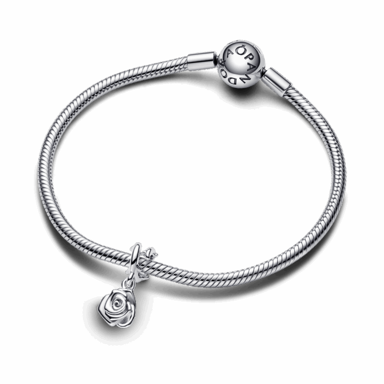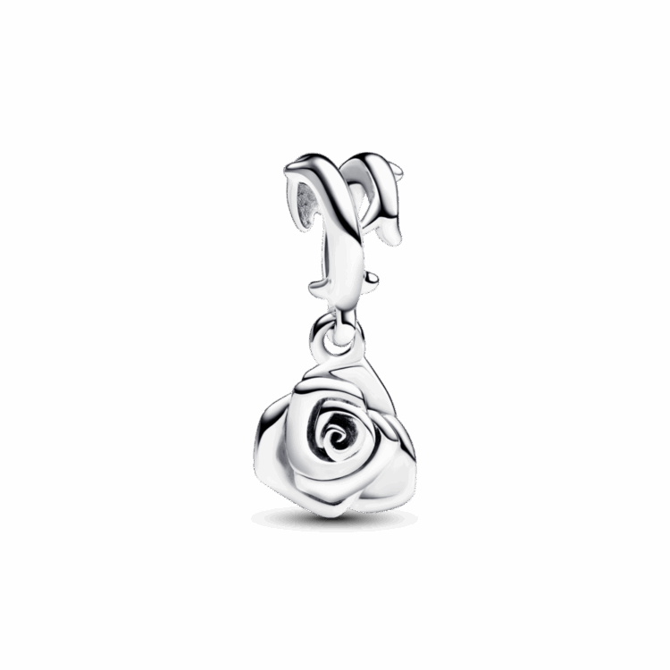 אמצי את סמליות הפרחים עם תליון כסף סטרלינג בצורת ורד מקולקציית Pandora Moments. עשוי כסף סטרלינג ומציג עיצוב עדין ותלת מימדי עם שכבות עלי כותרת המעוררים את תמצית האהבה הפורחת. הגב בגימור המלוטש מוסיף נופך של תחכום, בעוד שגבעול הורד עם הקוצים מוסיף מימד של ריאליזם.