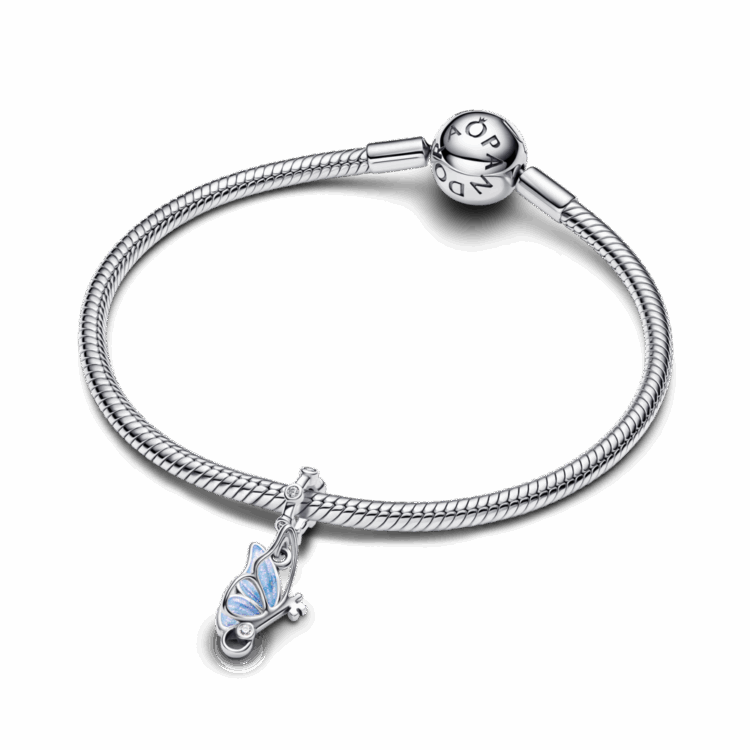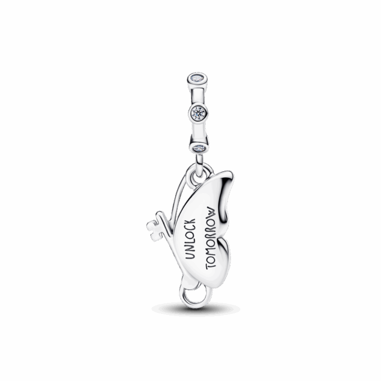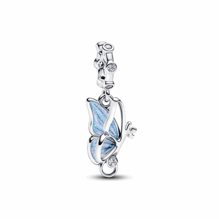 תליון כנפי פרפר מכסף עם זירקונים ואמייל כחול מנצנץ. סמל לחופש, תקווה ויופי.