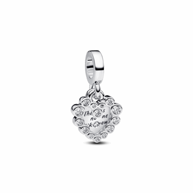 שתפי את כולם ברגשותייך עם תליון הלב הכפול שלנו. עשוי כסף סטרלינג וכולל שני תליונים נפרדים בצורת לב. על אחד מהם משובצות אבנים נוצצות ואבן אחת במרכז, ועל השני מופיע הכיתוב המרגש There is no one like you. התכשיט הזה חוגג את כוחה של אהבתה של אמא.