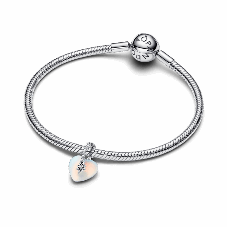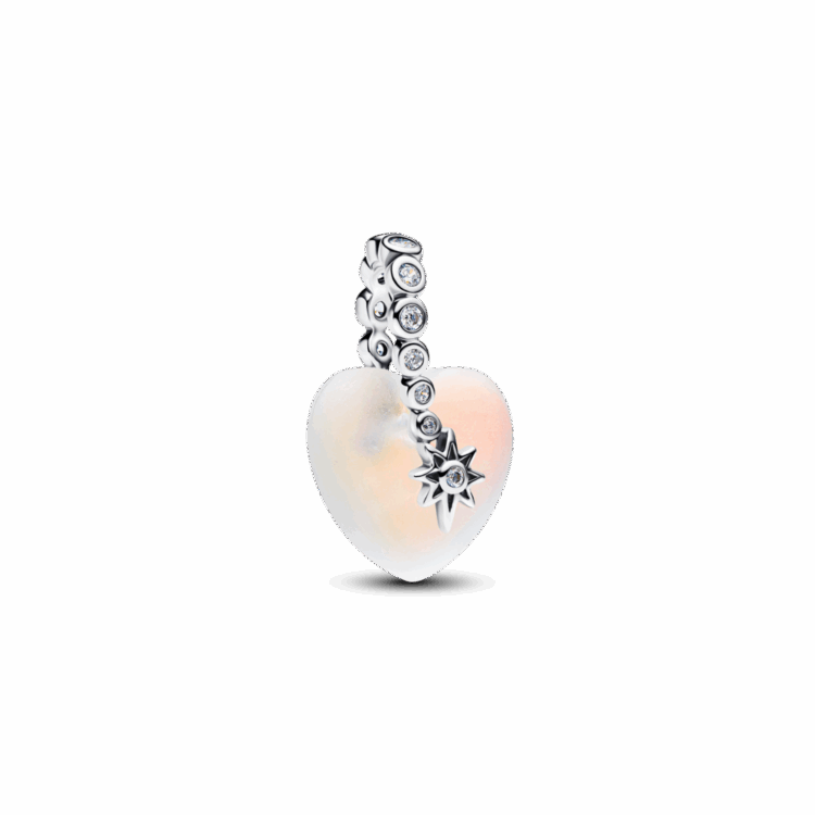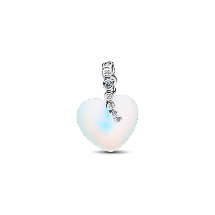 תליון כסף לב עם זרקון וזכוכית מונסטון זוהרת