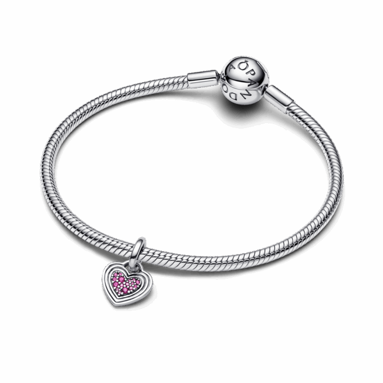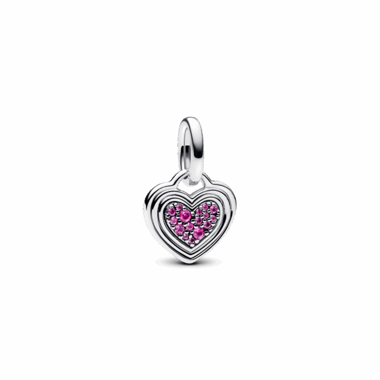תליון כסף סטרלינג בצורת לב עם אבני קריסטל ורודות ונוצצות במרכז. החלק אחורי חלק ומלוטש וניתן לחרוט עליו כל מסר אישי. הוא מתנה מושלמת וייחודית או תזכורת לאהבה עצמית.