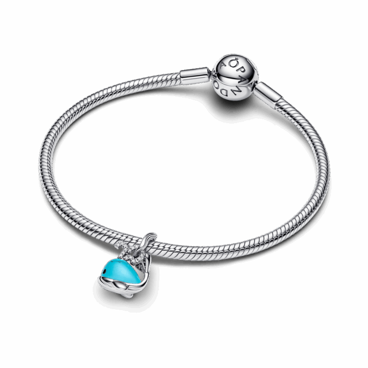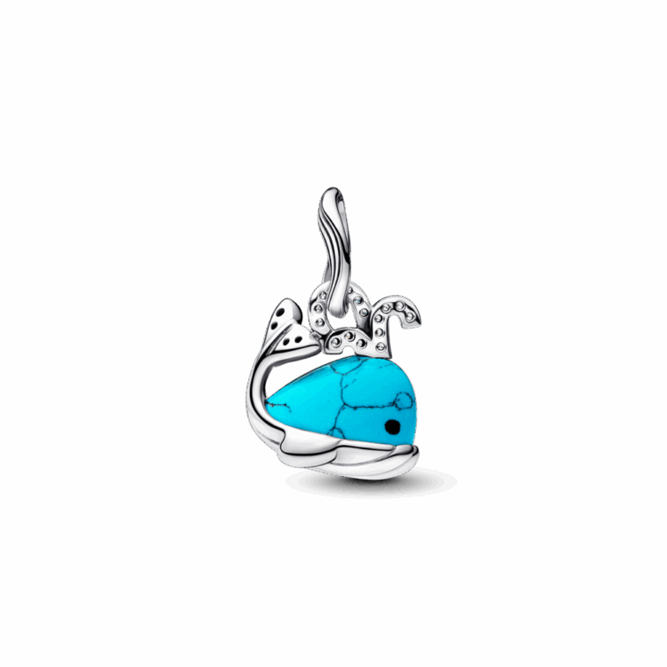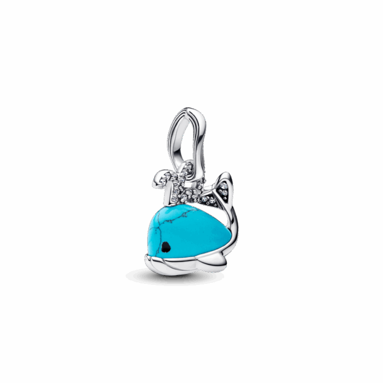 מוכנה לצלול לעומקים חדשים של שיק? תליון כסף סטרלינג בצורת לוויתן מתוק בצבע טורקיז עם אמייל שחור וזרקונים נוצצים בצורת סנפיר. שלבי אותו עם צארמס נוספים בוייב קייצי ומרענן.