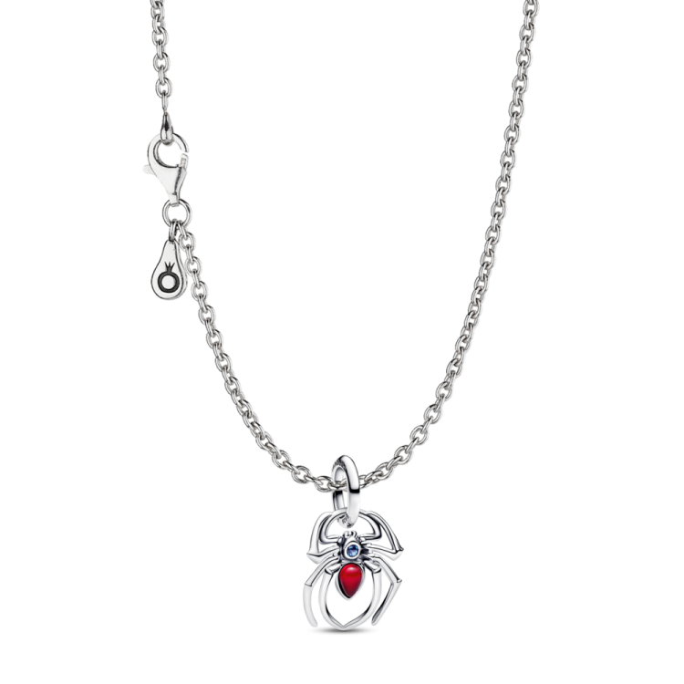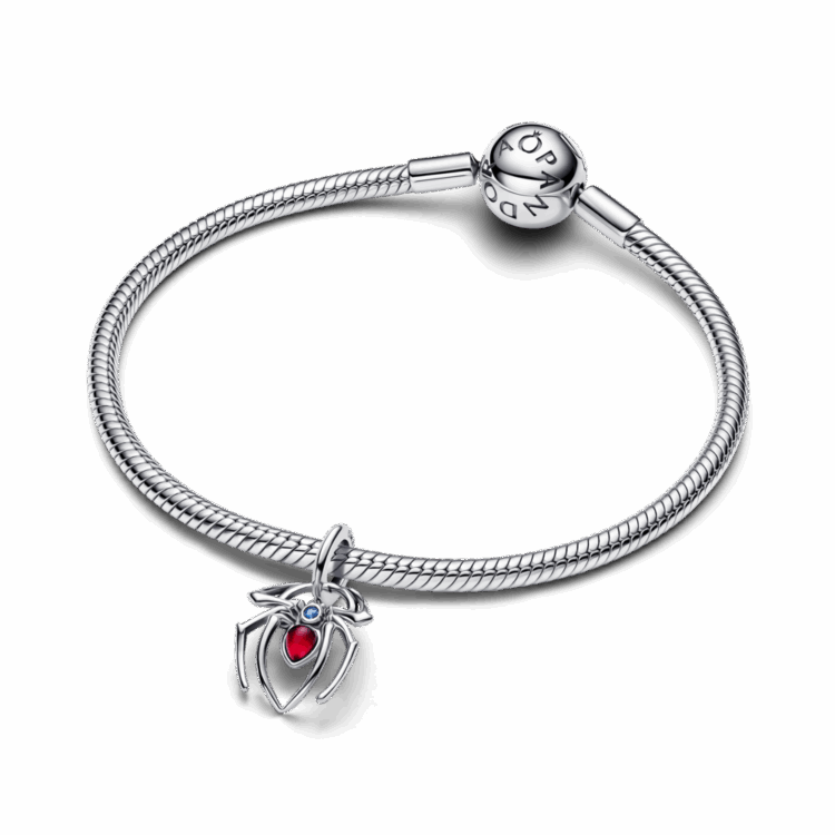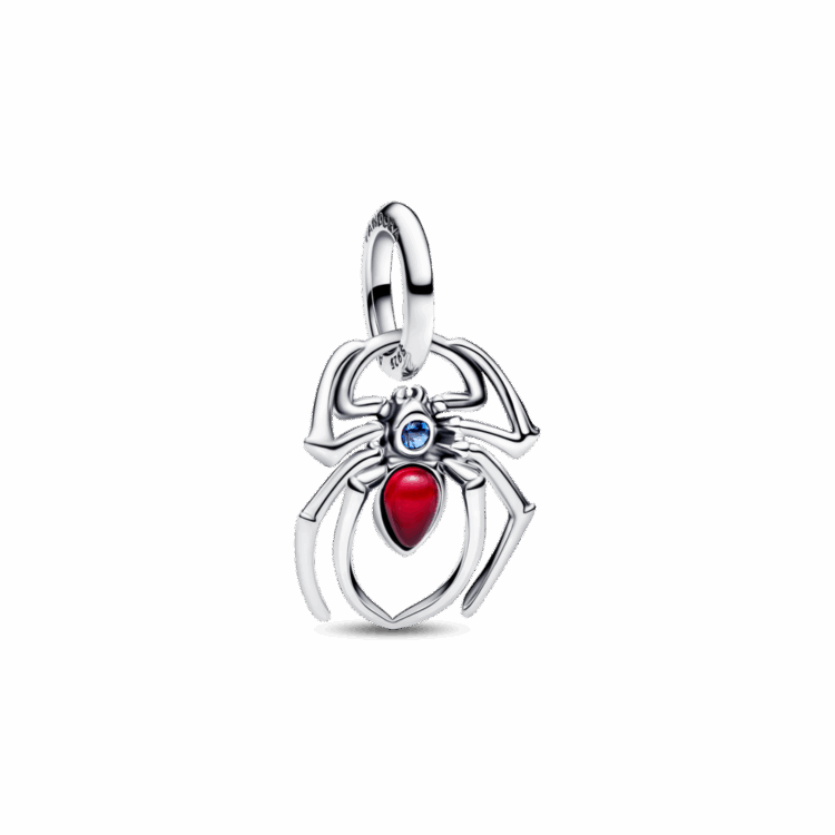 תליון ספיידרמן של מארוול מכסף סטרלינג, משובץ קריסטלים בצבע כחול ואדום. עיצוב נועז ודינאמי בהשראת גיבור-העל האהוב, מושלם לאוהבי מארוול שרוצים להוסיף נגיעה של כוח וסטייל ייחודי ללוק היומיומי.