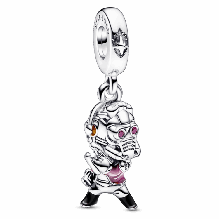 אדון הכוכבים מעוצב מכסף סטרלינג עם פריטי אמייל עבודת יד המדגישים את האוזניות, המעיל והמגפיים שלו. הוא הגיע כדי להציל את המצב, והוא מחזיק את הקוואד בלאסטר ואת הווקמן שלו וחובש את הקסדה האיקונית שלו, כשעיניו רוחשות באבנים אדומות. המילים אדון הכוכבים (STAR-LORD) ועבריין אגדי (LEGENDARY OUTLAW) חרוטים על כל צד של הוו, שבחזיתו מוטבע גם הסמל של שומרי הגלקסיה. הוסיפי את אדון הכוכבים לאוסף Marvel x Pandora שלך כדי להוסיף אקשן לסגנון שלך.