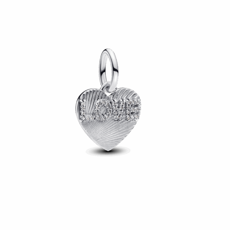 ספרי לכולם על אהבתכם עם תליון לב עשוי כסף סטרלינג. מעוצב בטקסטורת פסים ייחודית עם זרקונים נוצצים המרכיבים את המילה המרגשת LOVE.