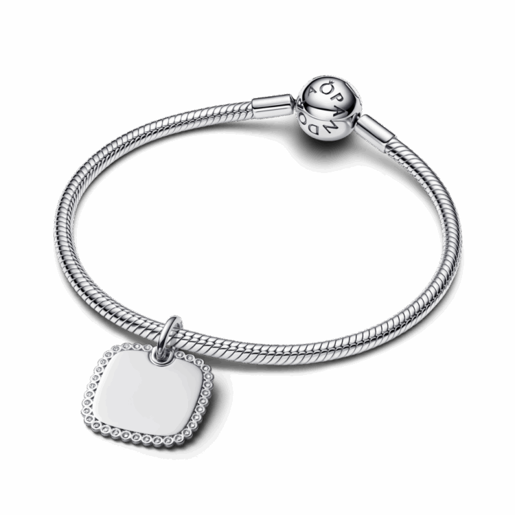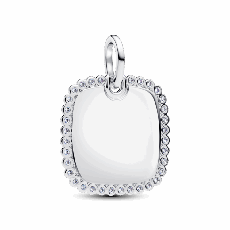 תליון מרובע לחריטה מכסף סטרלינג עם זרקונים.שילוב של קלאסי ומודרני, מושלם למתנה עם מסר אישי מהלב.