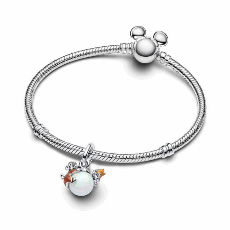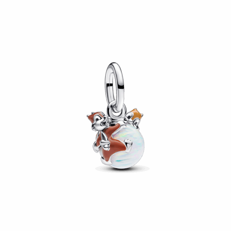 תליון כסף סטרלינג בהשראת הדמויות המתוקות של דיסני, ציפ ודייל. כולל צבעי אמייל ואבן אופל עגולה הנוצרה במעבדה.