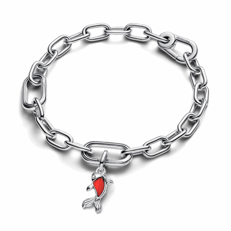 תליון כסף סטרלינג קטן בצורת דג סופר מתוק מקולקציית Pandora ME, עם זכוכית מוראנו בצבע אדום. שלבי אותו עם צארמס ותליונים נוספים בוייב קייצי וצרי לוק מרענן וצבעוני במיוחד.