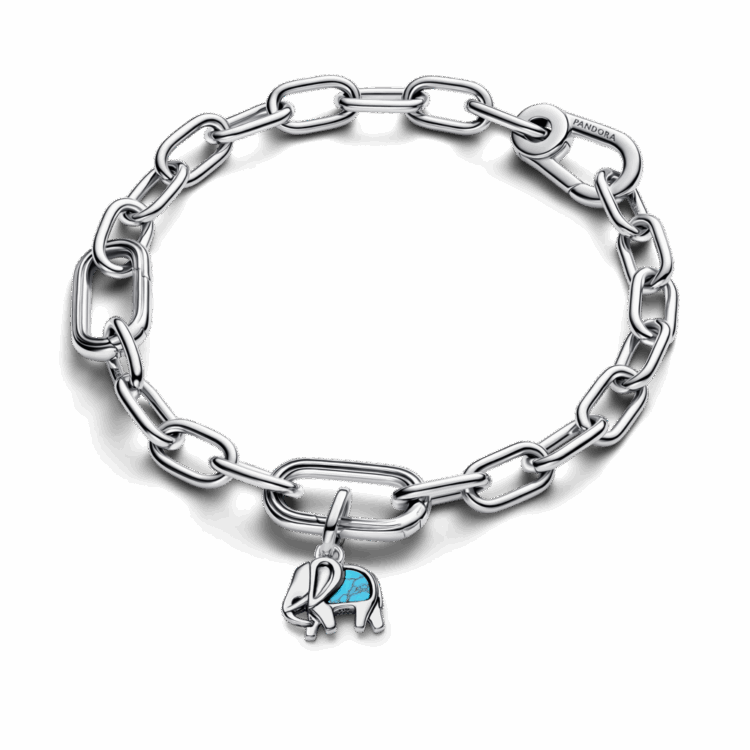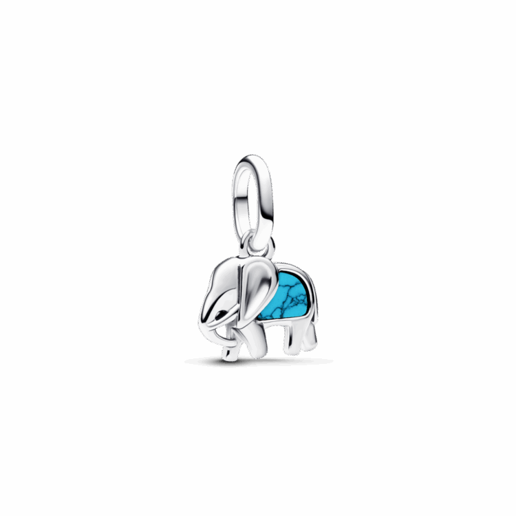 תליון בגודל מיני מקולקציית Pandora ME, עשוי כסף סטרלינג בצורת פיל חמוד עם אבן ייחודית בצבע טורקיז בעיצוב מארבל. הוא ישדרג ברגע את התכשיט שלך וישתלב מושלם עם תליונים נוספים בגוונים דומים.