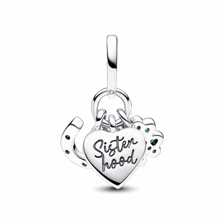תליון כסף Sisterhood פרסה, לב ותלתן