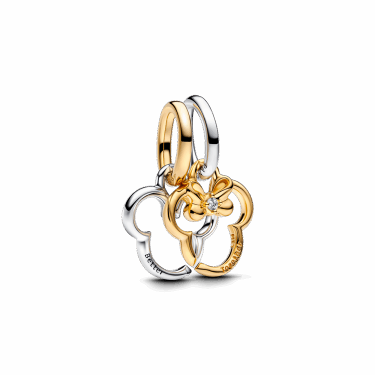 תחגגי אהבה אמיתית עם הזוג האייקוני מכולם: מיקי ומיני מאוס של דיסני. תליון כפול עשוי כסף סטרלינג וציפוי זהב 14 קראט בצורת קווי המתאר שלהם, עם הכיתובים Better ו-Together. הפפיון של מיני משובץ בזרקון נוצץ, ולשני התליונים יש פתח שאפשר לחבר אותם ביחד.