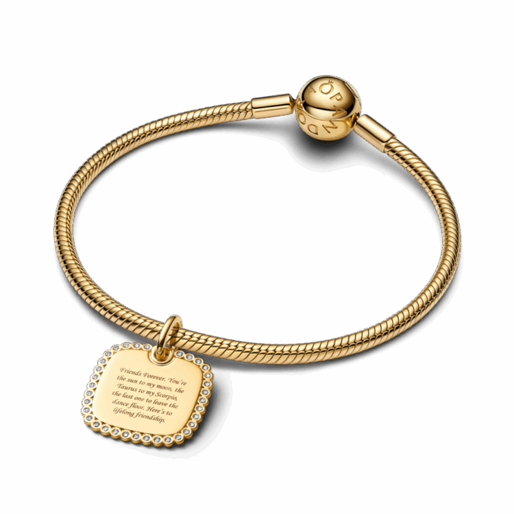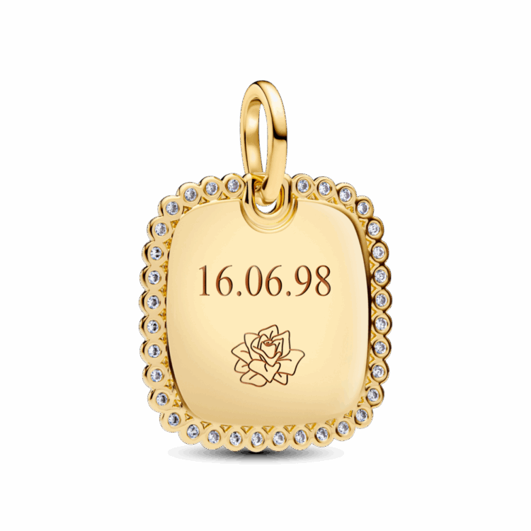 תליון מרובע ציפוי זהב וזרקונים ניתן לחריטה