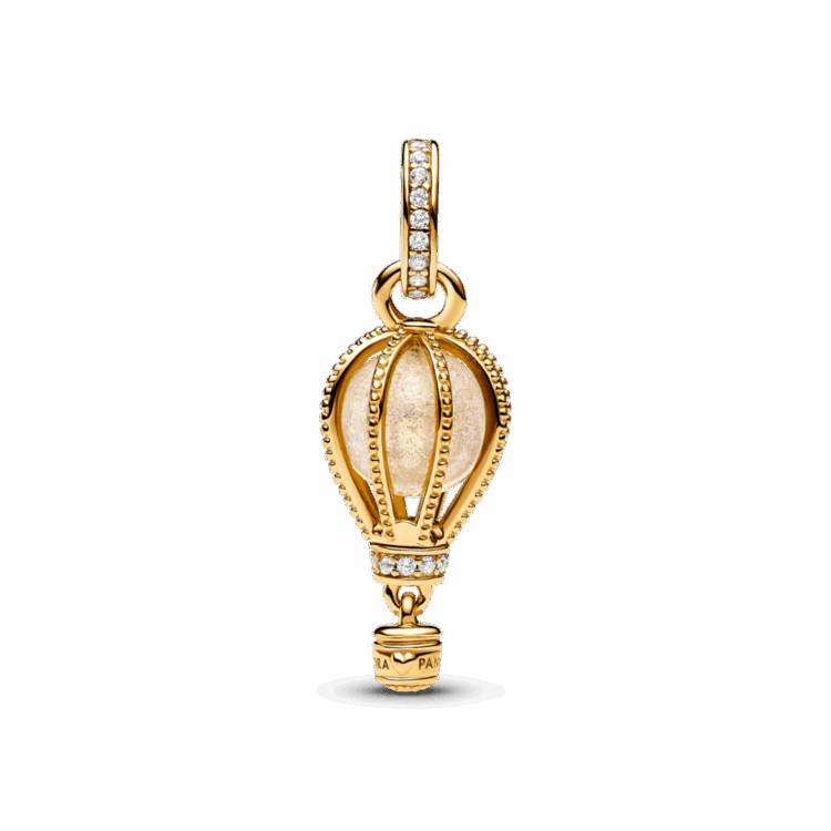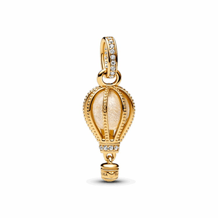 הגיעי לגבהים חדשים עם תליון בציפוי זהב 14 קראט בצורת כדור פורח. הצארמ עשוי עבודת יד עם זכוכית מוראנו שקופה ונוצצת ושיבוץ זרקונים שקופים. למטה מחכה גונדולה קטנה שתסיע אותך ליעד. ענדי אותו להשראה יומיומית או תני אותו למישהי שמוכנה להרפתקה הבאה שלה.
