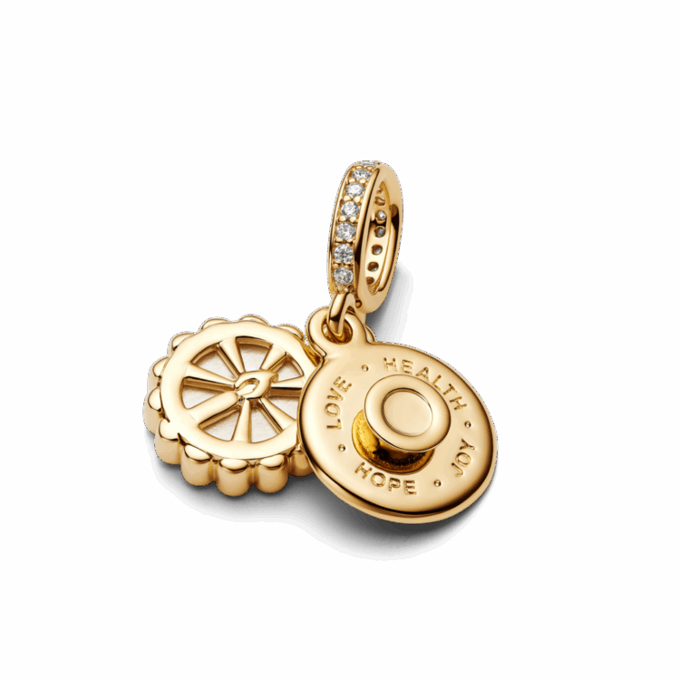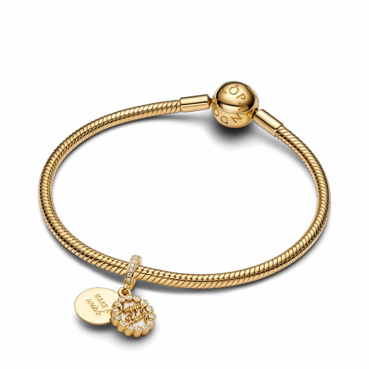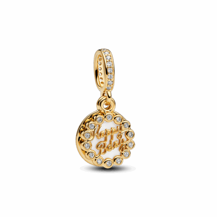 יום הולדת בלתי נשכח: תליון כפול בציפוי זהב 14 קראט בצורת עוגת יום הולדת. היא כוללת אבנים נוצצות וכיתובים משמחים במיוחד. אין ספק שמדובר בפינוק הכי מתוק ליום הכי חגיגי בשנה.