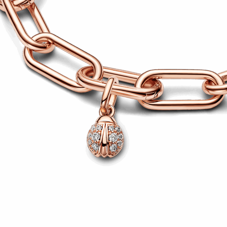 המזל תמיד יהיה לצידך כשאת עונדת את תליון החיפושית מקולקציית Pandora ME. מיני צארמ בציפוי זהב ורוד 14 קראט המעוצב בצורת חיפושית עם כנפיים מעט פתוחות בשילוב אבנים נוצצות בגדלים שונים. שלבי אותו עם תליונים נוספים שמדברים אלייך. מתאים גם לקולקציית Pandora Moments וגם ל-Pandora ME.